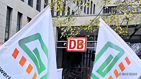 Am heutigen Streiktag fand, vor dem DB Gebäude in der Elisabeth-Schwarzhaupt-Straße 1, unsere Kundgebung statt.