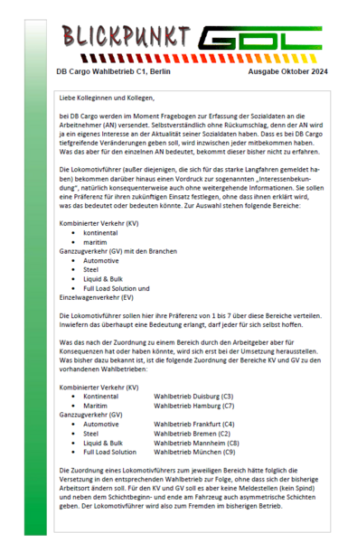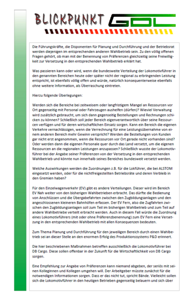 Eine sehr gute Zusammenfassung unserer Kollegen aus dem Wahlbetrieb C1 aus dem GDL Bezirk Nordost. Wieder einmal sollen Lokführer Fehler des Arbeitgebers ausbaden.
