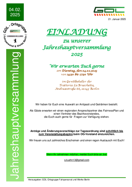 Einladung zur Jaheshauptversammlung und Tagesordnung